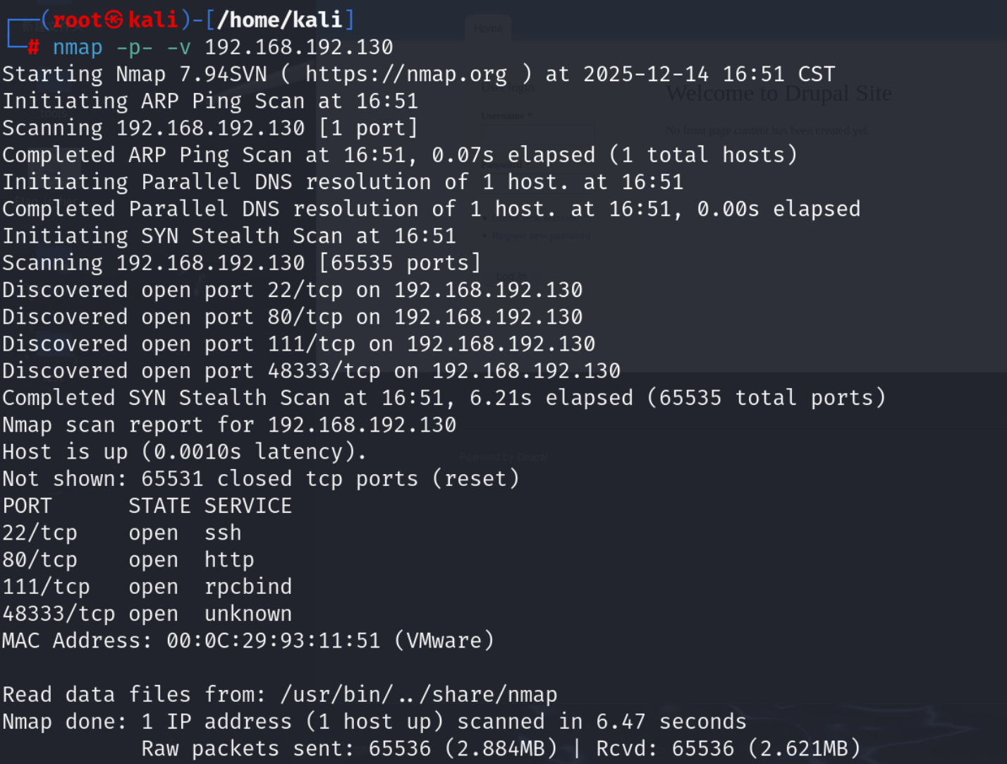 payload:namp -p- -V 192.168.192.130
